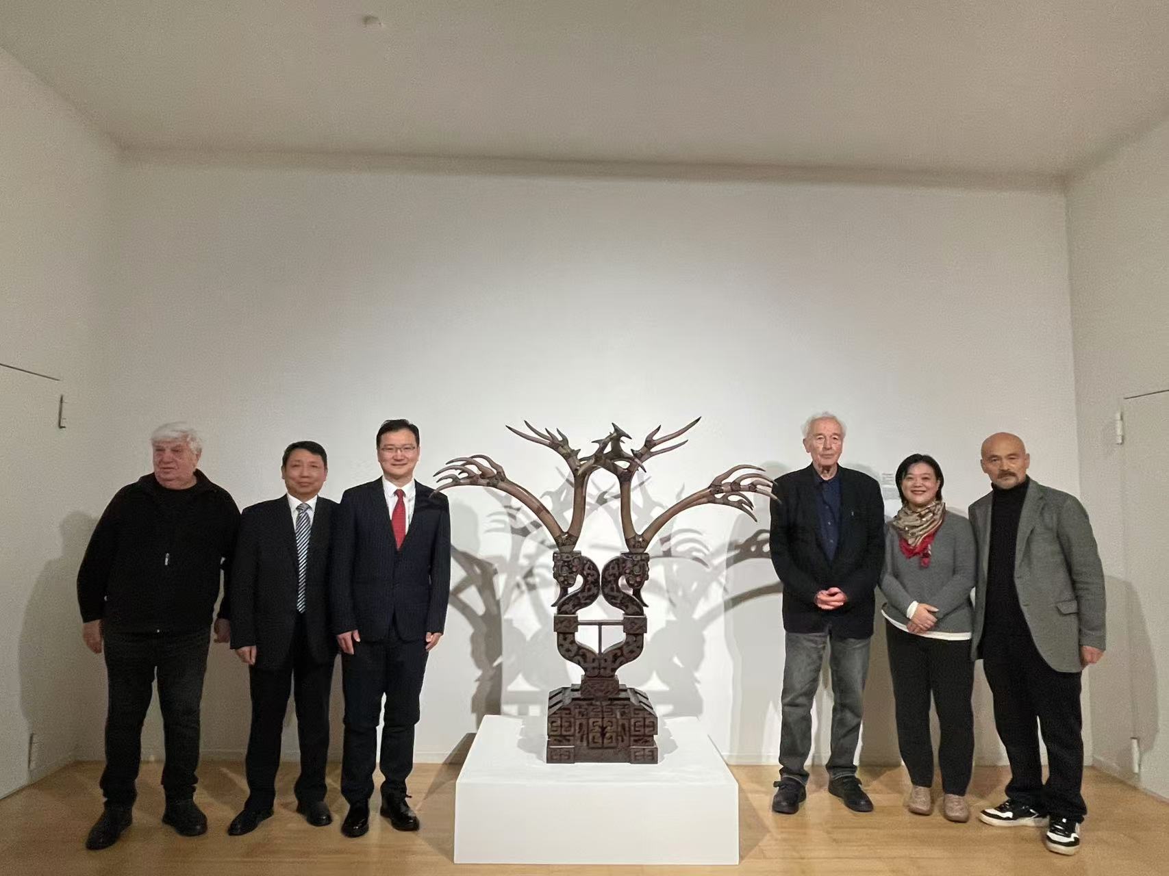 11月22日,由湖北省文化和旅游厅(湖北省文物局)、中国驻杜塞尔多夫总领事馆支持,湖北省博物馆与德国波恩当代艺术馆联合主办的“亘古·新生——楚文化与当代艺术对话”展在德国波恩当代艺术馆开幕。展览开幕式由德国波恩当代艺术馆创始人任戎主持。中国驻杜塞尔多夫总领事余勇,湖北省博物馆党委副书记王先福,本次展览策展人、德国波恩国立艺术博物馆前馆长迪特·荣特教授出席并致辞。来自德国、芬兰、意大利等国艺术界的代表、海外华人和主办方的100多位嘉宾参加。