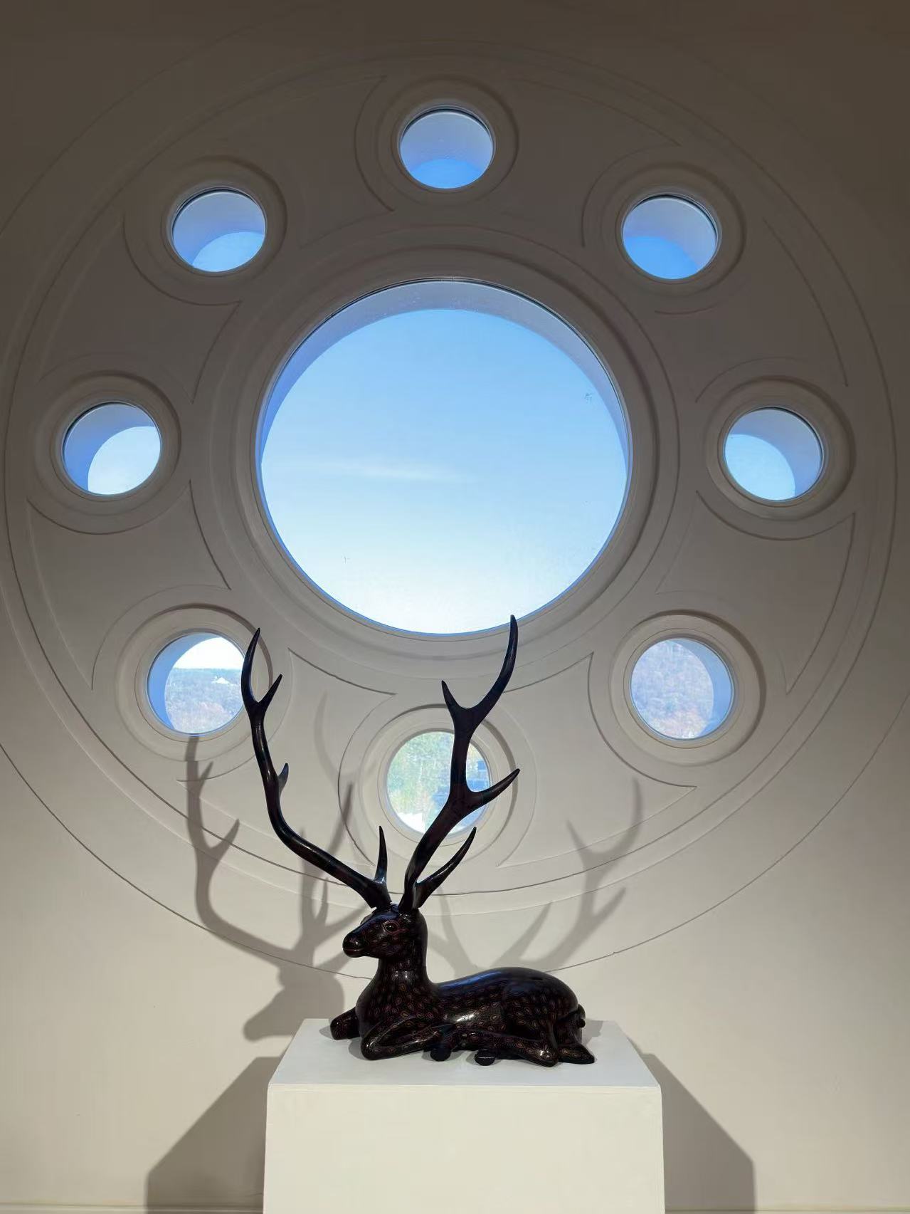 本次展览,由湖北省博物馆精选部分极具代表性的楚式青铜器、漆木器复制艺术品,包括青铜神兽形编磬架和彩漆梅花卧鹿、龙衔蛇莲瓣盘、透雕动物屏形瑟座、蟾蜍座凤鸟羽人、双头镇墓兽等,德国波恩当代艺术馆则遴选了由德籍华人艺术家任戎精心创作的20余幅水墨拓印作品,12件钢铁镂空雕塑装置。展览以楚文化为根脉,当代艺术为桥梁,打破时空隔阂,使千年楚地文明在当下语境中焕发新生气象,其核心意义,在于以对话激活传统文化的活态传承,使青铜礼器、漆木神器承载的精神意涵,从静态遗存转化为可与当代人共鸣的文化能量。整场展览以 “亘古” 锚定文化根源,以 “新生” 拓展传承路径,不仅为楚文化传播开辟新途,更成为传统文化创造性转化的典范,为当代艺术激活古老文明提供了可借鉴的实践方向。
