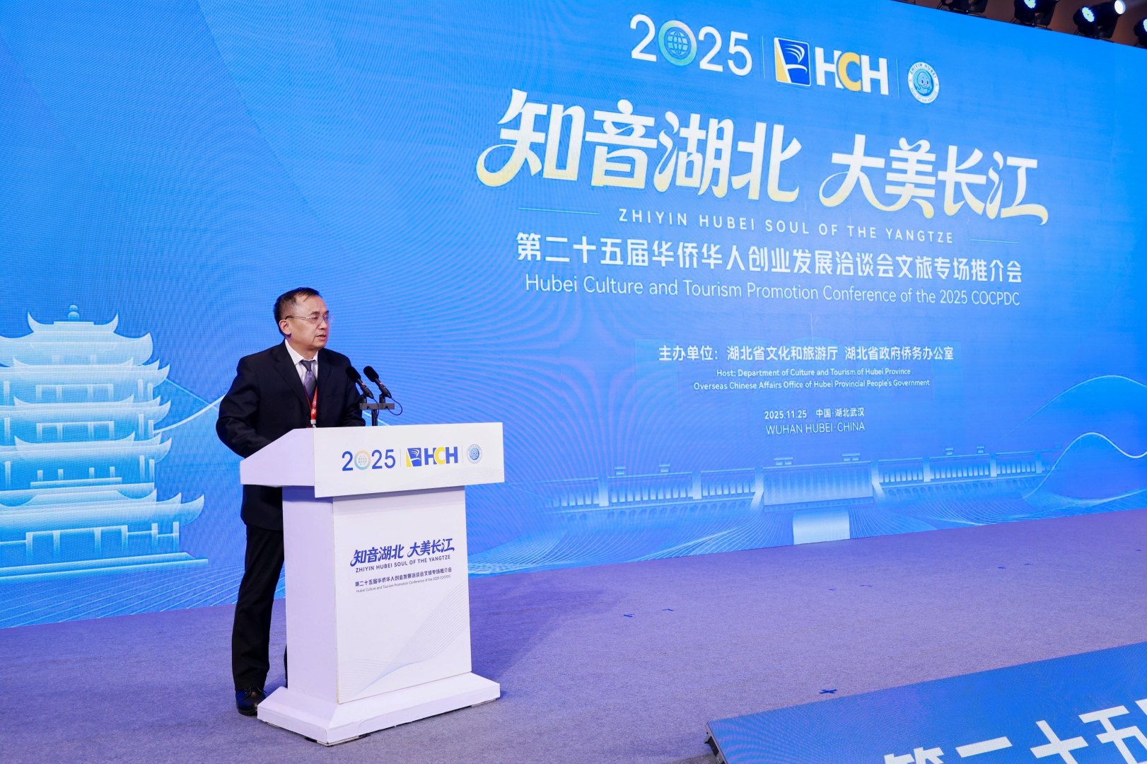 2025年11月25日下午,第二十五届华侨华人创业发展洽谈会(以下简称“华创会”)首次设立的“知音湖北·大美长江”文旅专场推介会在武汉光谷科技会展中心隆重举行。本次活动由湖北省文化和旅游厅、湖北省政府侨务办公室联合主办,旨在向全球侨胞推介湖北文旅资源,搭建国际合作平台,深入实施“知音湖北·全球合作伙伴”计划,推动湖北文旅产业高质量发展。本次大会吸引了来自全球30多个国家的海外华人华侨代表、省内旅游集团、旅游协会、旅游供应商(旅行社、酒店、景区)、机场公司、航空公司等200余人齐聚一堂,共话湖北文旅发展机遇,共谋国际合作新路径。