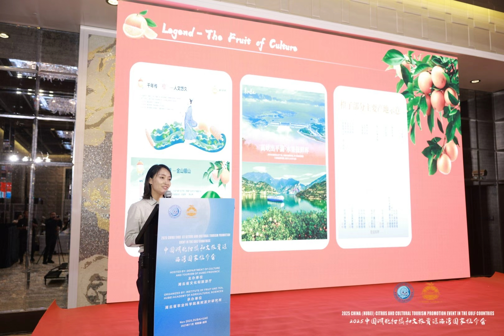 11月29日,湖北柑橘暨文旅资源海湾国家推介会在阿联酋迪拜成功举办。本次活动由湖北省文化和旅游厅主办,湖北省农业科学院果树茶叶研究所承办。阿联酋中国文化中心、阿联酋湖北商会暨同乡会及CUNARD TRADING L.L.C、SAF MIDDLE EAST INTERNATIONAL TRADING L.L.C、Uranus Travel &tours llc、迪拜温超超市、迪拜中百超市等迪拜重点商贸、文旅企业代表等近百人参加本次活动。