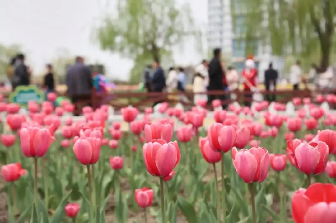 游人在山东秦皇河公园内赏花游玩。新华社发 郭志华 摄