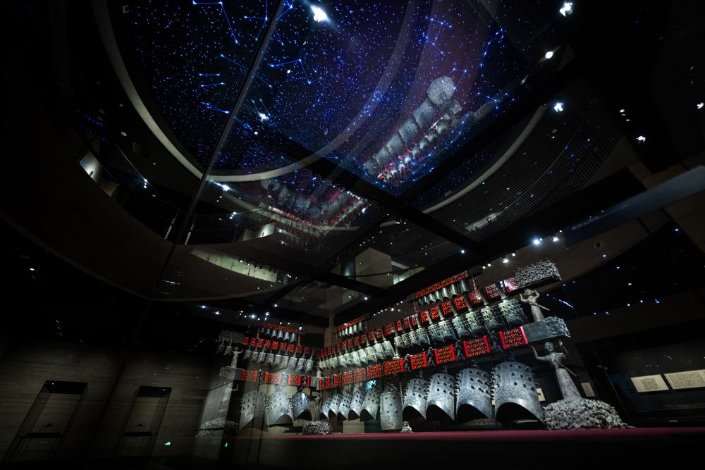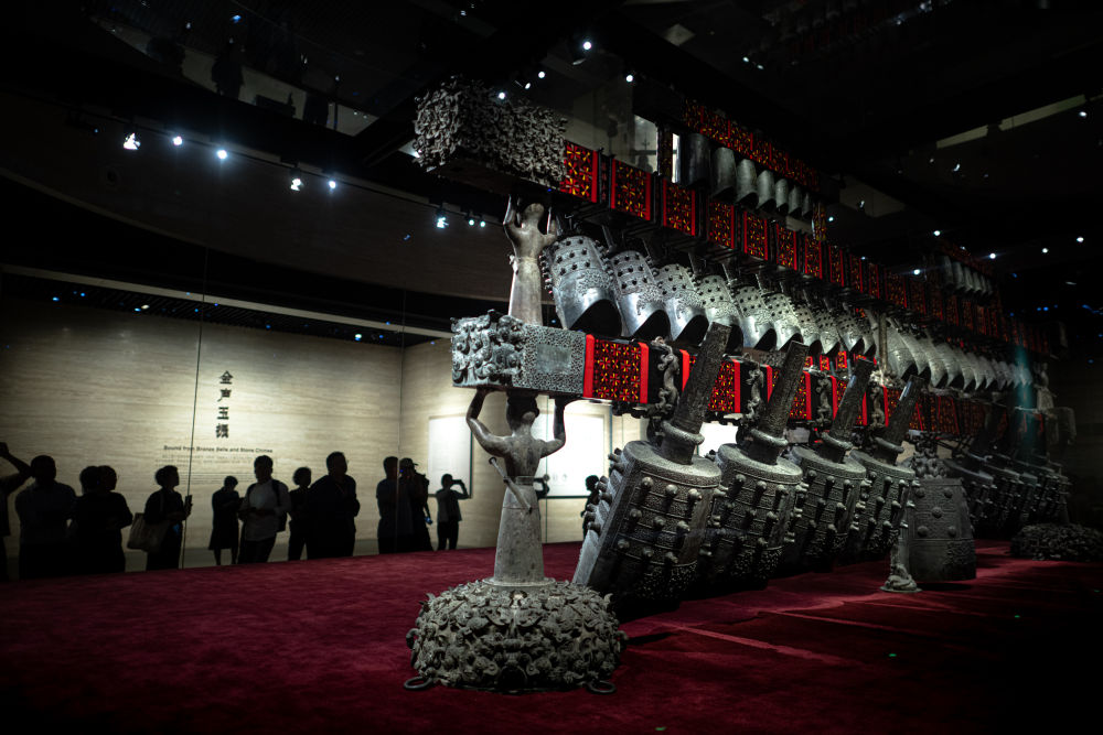 ↑这是4月17日在湖北省博物馆拍摄的随州曾侯乙编钟。新华社记者 肖艺九 摄