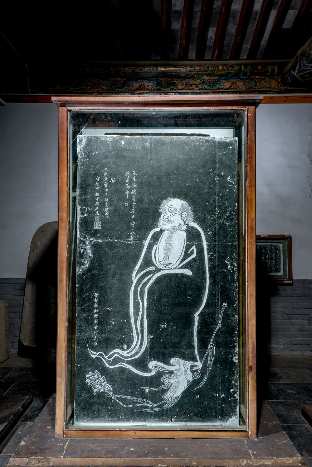 ↑这是位于少林寺的《达摩一苇渡江像》碑(资料图片)。
