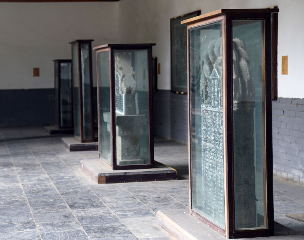 ↑这是位于少林寺的《一佛二菩萨造像》碑正面(资料图片)。