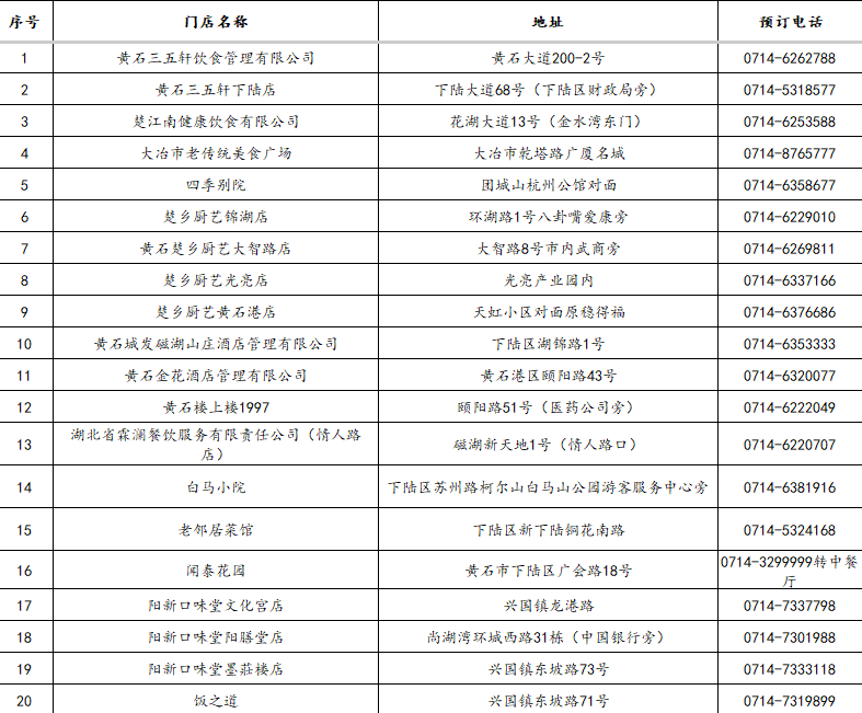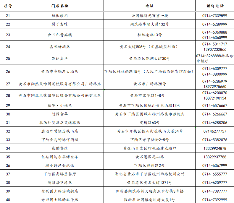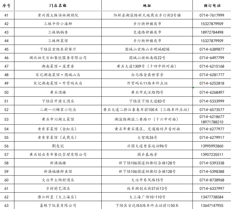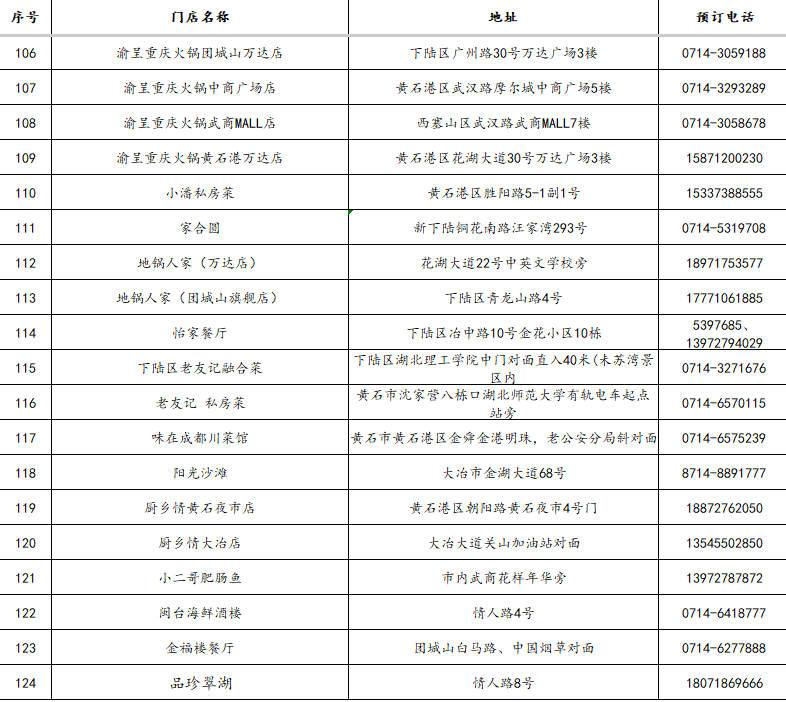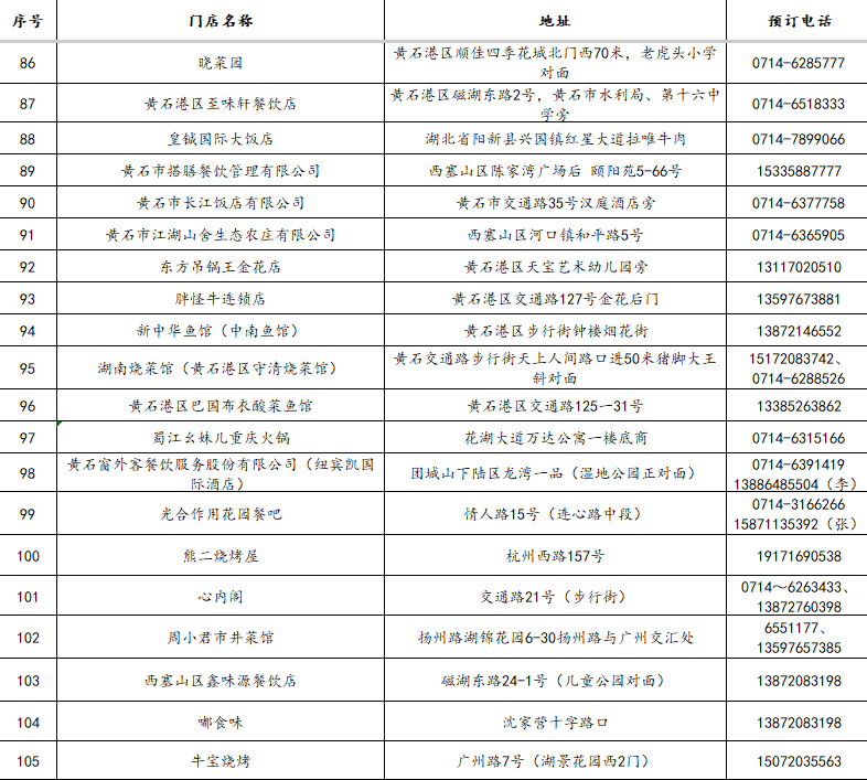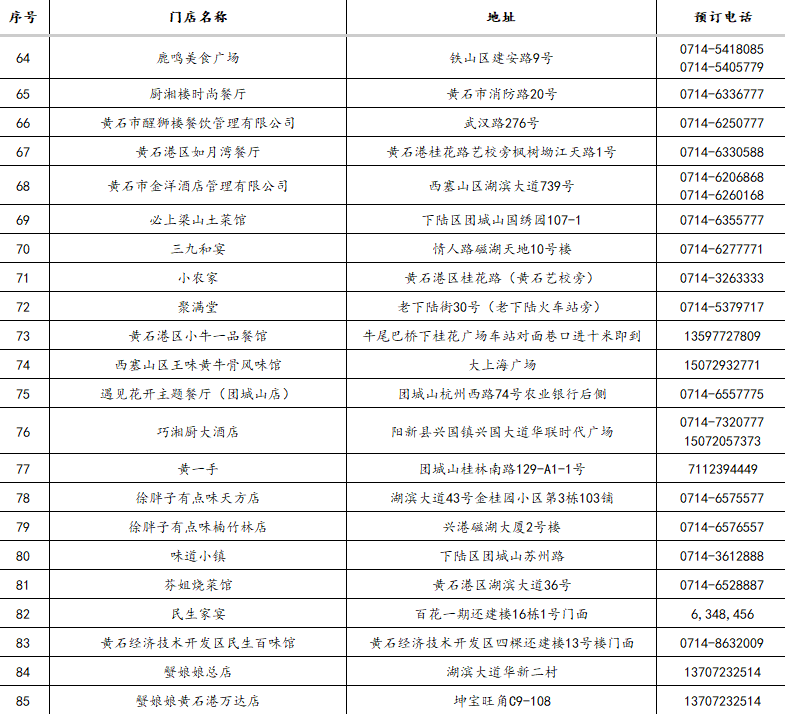 3.“五一”期间,凭黄石景区纸质门票或武商MALL、黄石港万达、团城山万达、黄石摩尔城、黄石时光汇五大商圈客服台盖章消费小票,在市餐饮酒店行业协会推荐单位消费(124家),可享受菜金8.5-9.2折优惠。