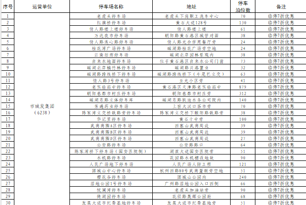 黄石市城市智慧停车管理有限公司管理的28条道路、总计3950个泊位在“五一”期间免费开放。具体道路如下: