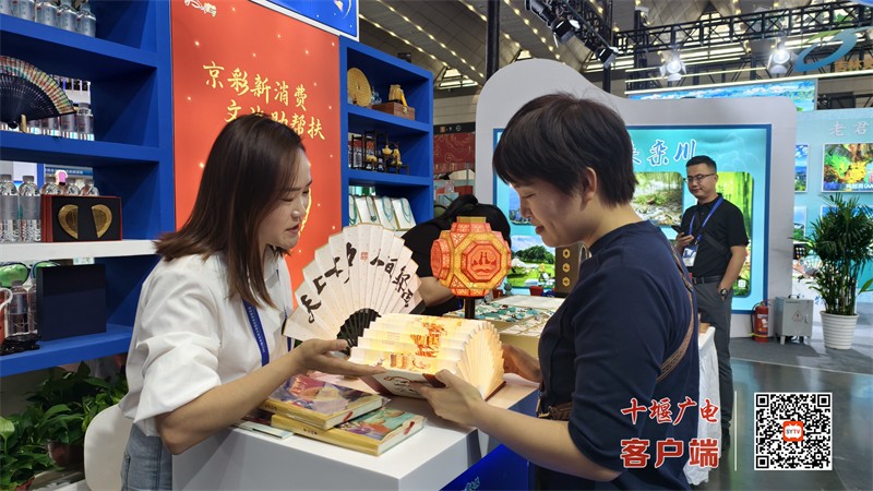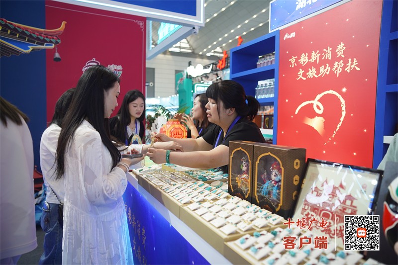 在十堰文旅展区内,武当金龙金画、小飞鼠玩偶、太极杯、郧西七夕乞巧水晶镇尺、竹溪武陵不夜城戏曲摆件、郧阳绿松石、米黄玉等文创产品将十堰的历史底蕴与现代创意巧妙融合,吸引众多观众驻足体验,充分展示了十堰的武当文化、恐龙文化、七夕文化、非遗文化等,成为年轻游客了解十堰的重要媒介。