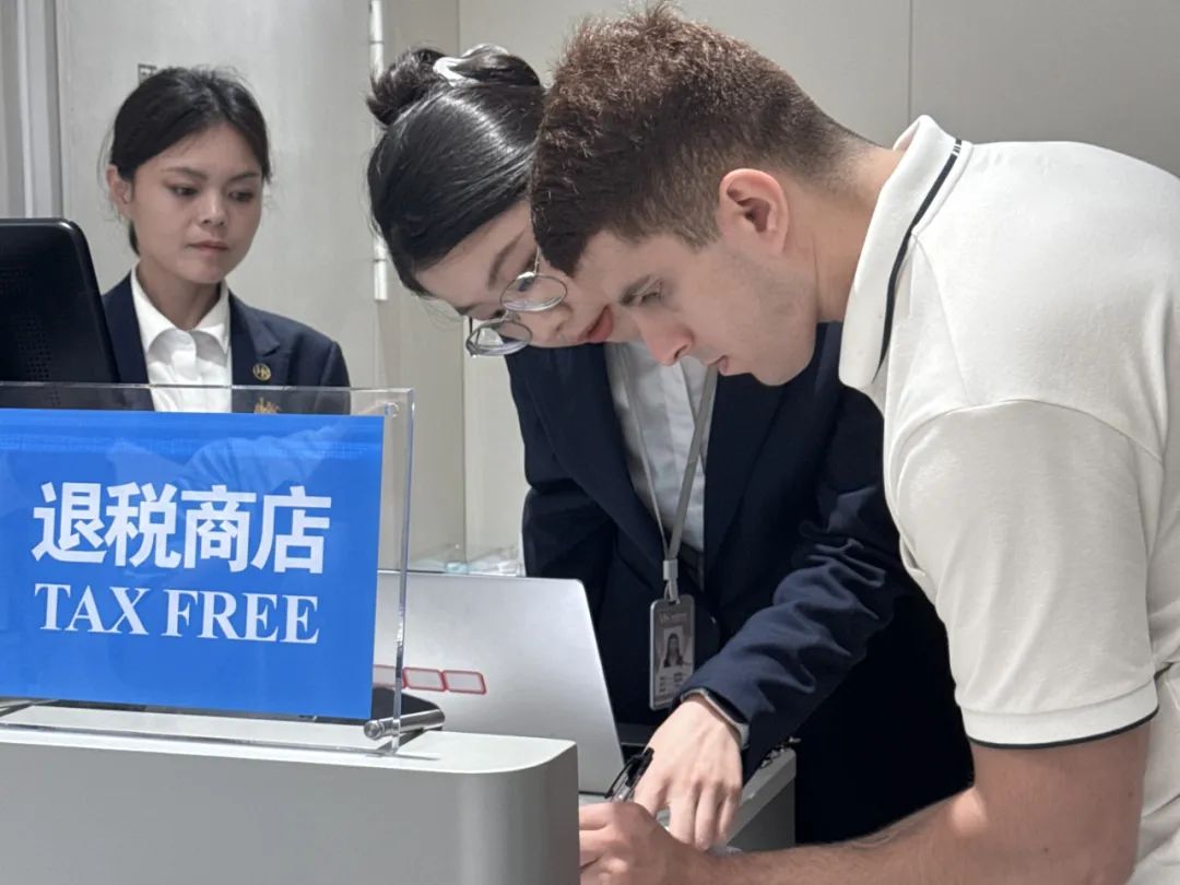 7月1日起,湖北省开始实施境外旅客购物离境退税政策。英国教师艾利克斯当天在武商梦时代选购了小米手机、小米手环后,出示自己的护照,工作人员现场为他开具相关退税手续文书,即完成境外旅客离境退税申报。按退税标准,他完成申请后,带着购买的物品、证件及相关单据,在机场离境口岸海关柜台核验后,就可在退税窗口收到退税款177.12元。
