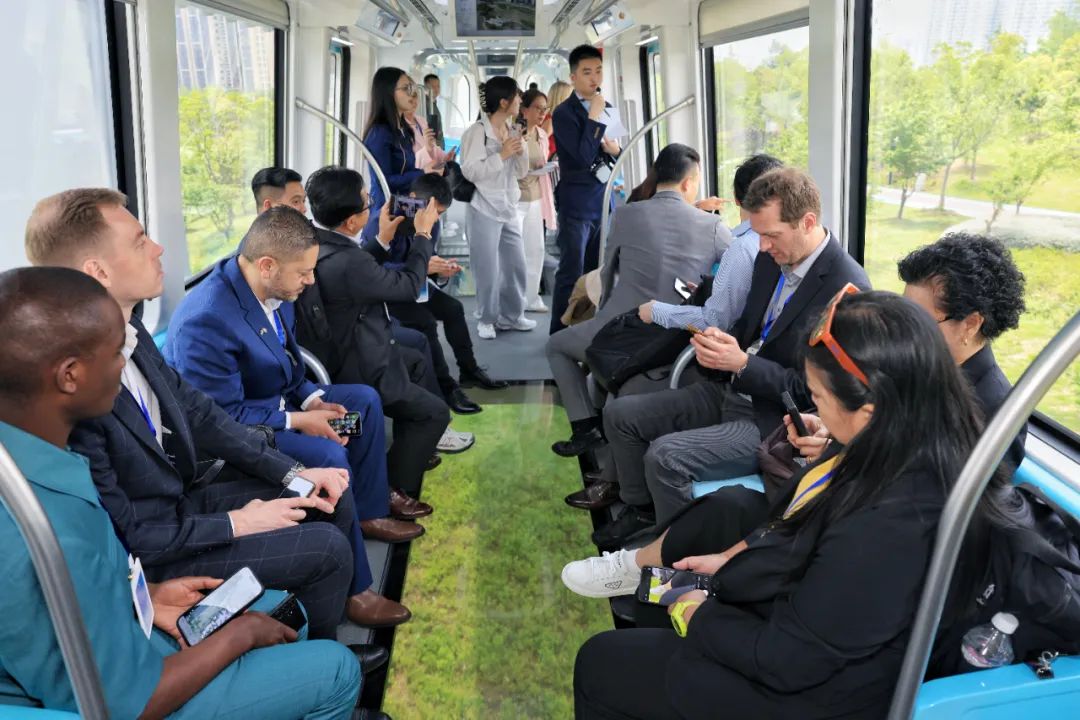 国际友人体验了武汉光谷空轨。记者胡冬冬 摄