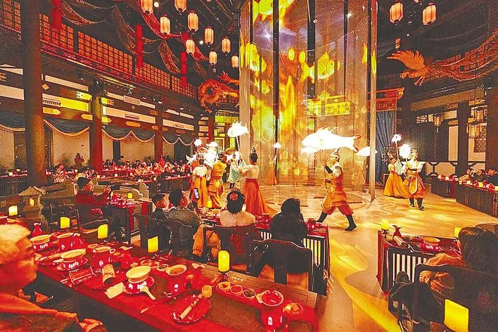近年来,“边看演出边用餐”的沉浸式餐秀正成为文旅体验新趋势。美团旅行数据显示,2025年第一季度“沉浸式餐饮秀”搜索量同比激增近275%。洛阳“唐宫夜宴”、南京“金陵梦华·宫宴”、重庆“渝味360碗·华礼宴”等项目,已成为许多城市的文旅新名片。
