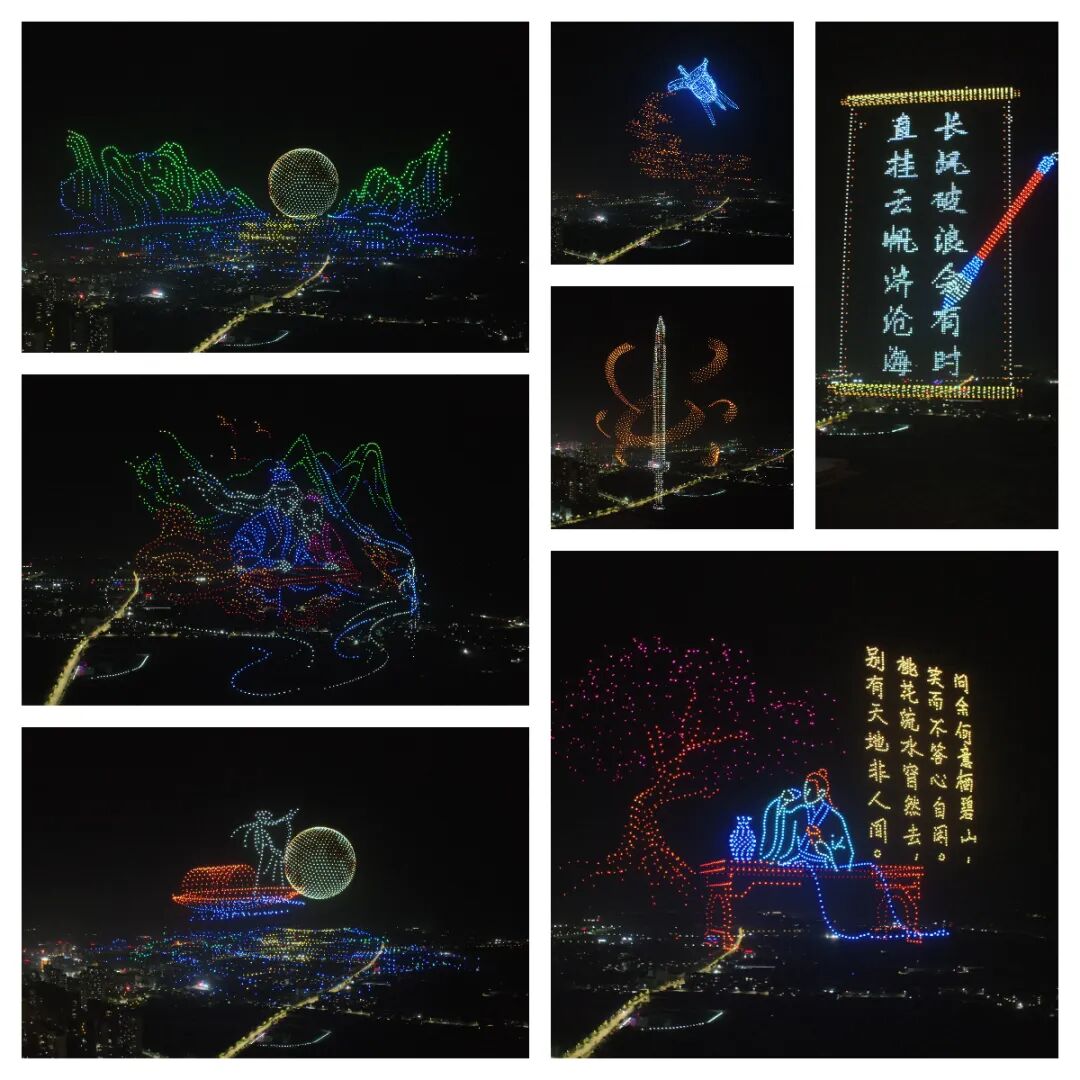 《长安三万里》李白配音演员凌振赫现身,揭晓安陆动漫电影《太白传之侠客行》2026年全球上映,留给大家无尽的期待;嘉宾们“山河画卷·诗意点亮”宣告安陆李白文化旅游节开幕。3000架无人机开启天幕表演把整个活动引入高潮。盛唐明月升涢水、李白乘舟入安陆、白兆山琴瑟和鸣、酒樽倾泻成诗……引得市民阵阵欢呼。