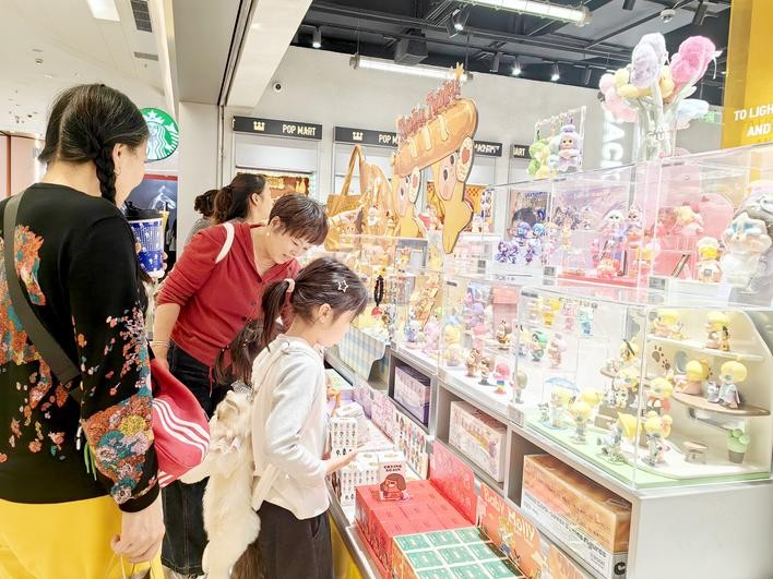 顾客在泡泡玛特襄阳首店选购商品。