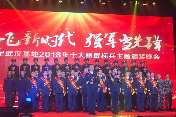 1月17日晚,由空军驻汉某基地政治工作部主办,湖北省群众艺术馆等三家单位承办的“奋飞新时代,强军当先锋——空军驻汉某基地首届十大精武标兵主题颁奖晚会”在空军驻汉某基地文体活动中心隆重举行。湖北省文化和旅游厅、湖北省群艺馆等单位领导出席了颁奖晚会,空军驻汉某基地官兵及家属职工观看了演出。