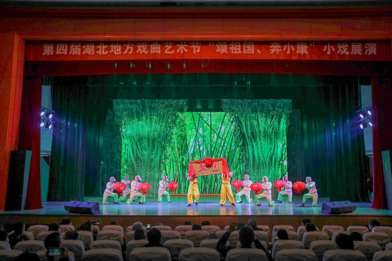第四届湖北地方戏曲艺术节暨“颂祖国、奔小康”小戏展演共有38出小戏参加展演,其中现实题材剧目有36出,占参演作品总数94.7%,艺术节期间多以进乡村、进景区开展惠民演出为主,深受民众喜爱,充分展示了全省文艺工作者坚持以人民为中心的创作导向,通过观照人民生活、表达人民心声,增强了群众的文化获得感、幸福感。