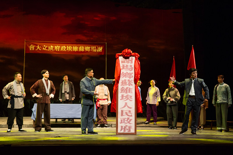 仙桃市花鼓戏剧团创排的大型现代荆州花鼓戏《胡幼松》,以“五卅运动”为历史背景,紧紧围绕“矢志不移跟党走”主题,塑造了“农运大王”胡幼松这一智慧而坚毅的共产党人形象,全剧通过创建沔西游击队、变卖家产购买枪支、智救县委书记娄敏修、大义灭亲铲除变节大哥、严刑逼供下英勇就义等故事情节有序展开,表现了在新中国建立的伟大历程中,共产党人为追求真理英勇斗争的豪迈气概,歌颂了先辈们为捍卫信仰甘洒热血的革命英雄主义。饮水思源不忘来时路,缅怀先烈就是对共产党人初心的回望,讴歌英雄就能激发起奋进路上不竭的动力。