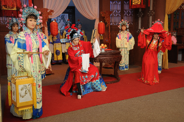 冯素贞与李兆廷自幼相爱,情定终生。素贞继母嫌贫爱富,逼李兆廷退婚。无奈素贞女扮男装进京寻兄冯少英,冒名应试,不料竟中状元,被招驸马。洞房之夜冯素贞向公主吐露真情,金殿之上冒死说出实情。皇帝在公主的央求下赦免了冯素贞死罪,并成全了与李兆廷的姻缘。而公主也嫁给了冯素贞的哥哥八府巡按冯益民。麒麟成双人成对,并蒂花开万年红。