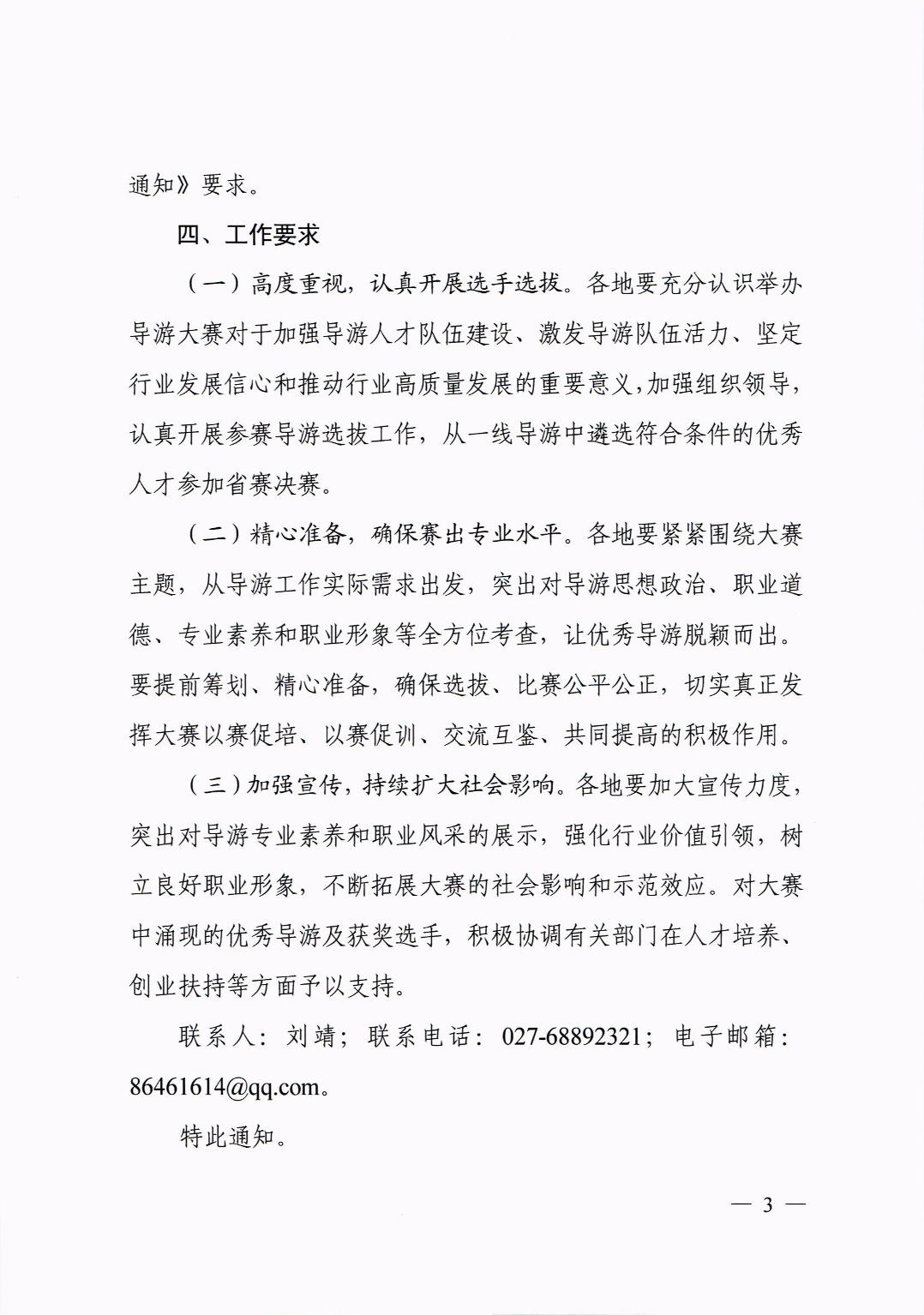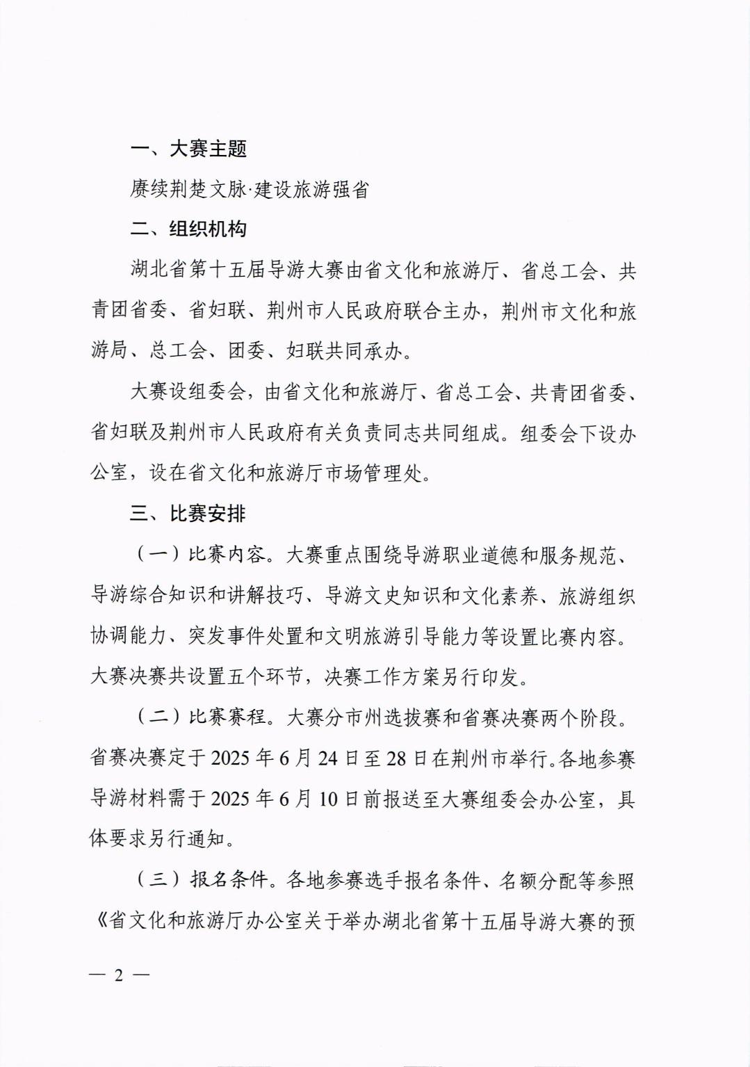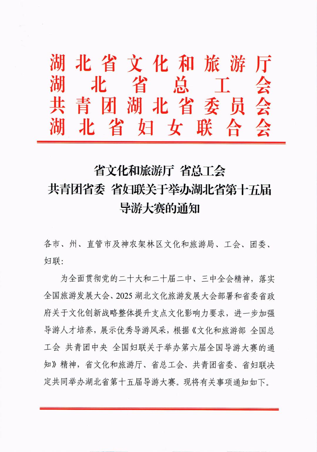 湖北省文化和旅游厅 湖北省总工会 共青团湖北省委员会 湖北省妇女联合会关于举办湖北省第十五届导游大赛的通知