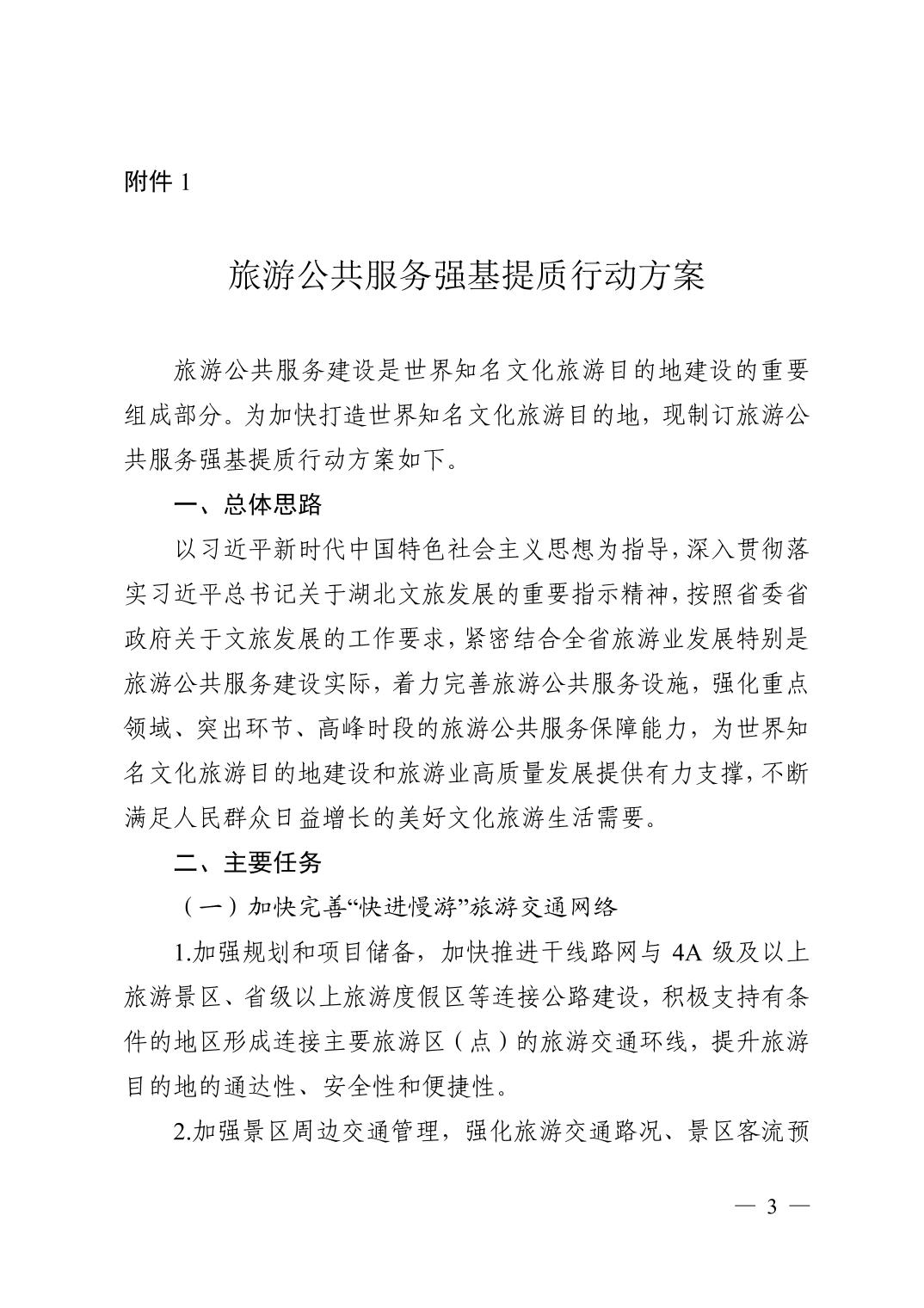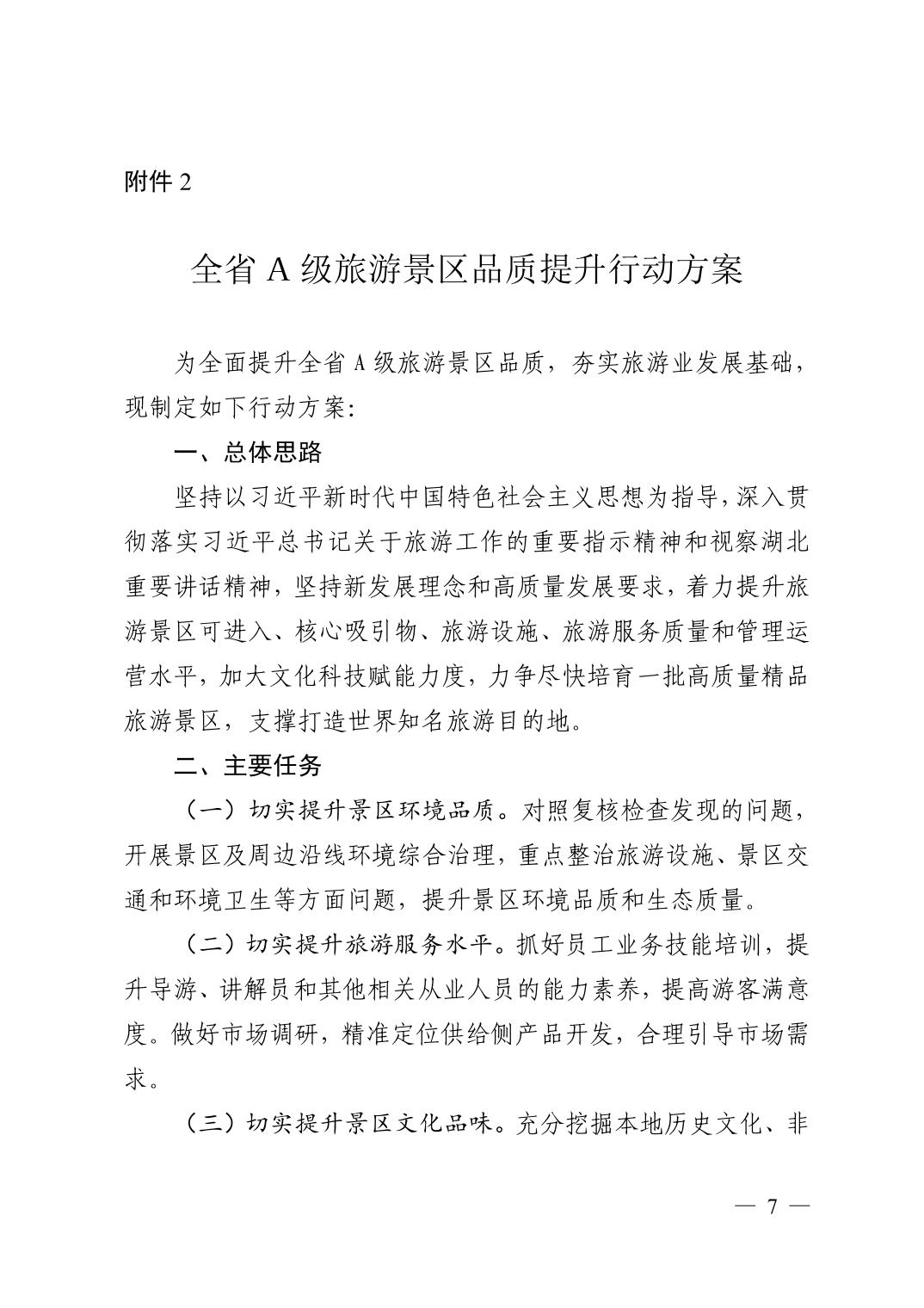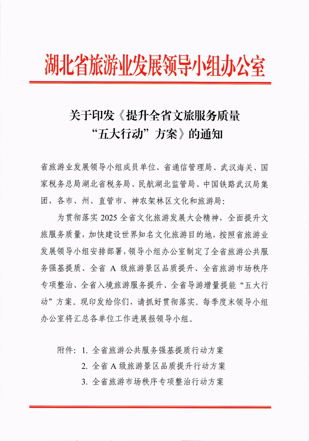 湖北省旅游业发展领导小组办公室关于印发《提升全省文旅服务质量“五大行动”方案》的通知