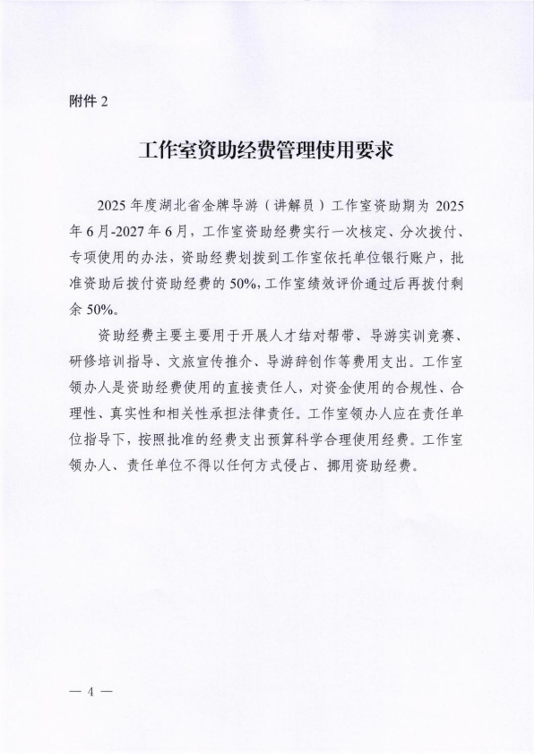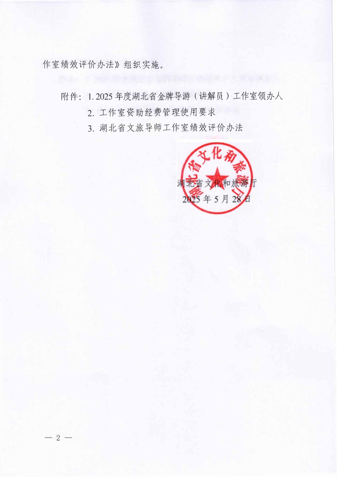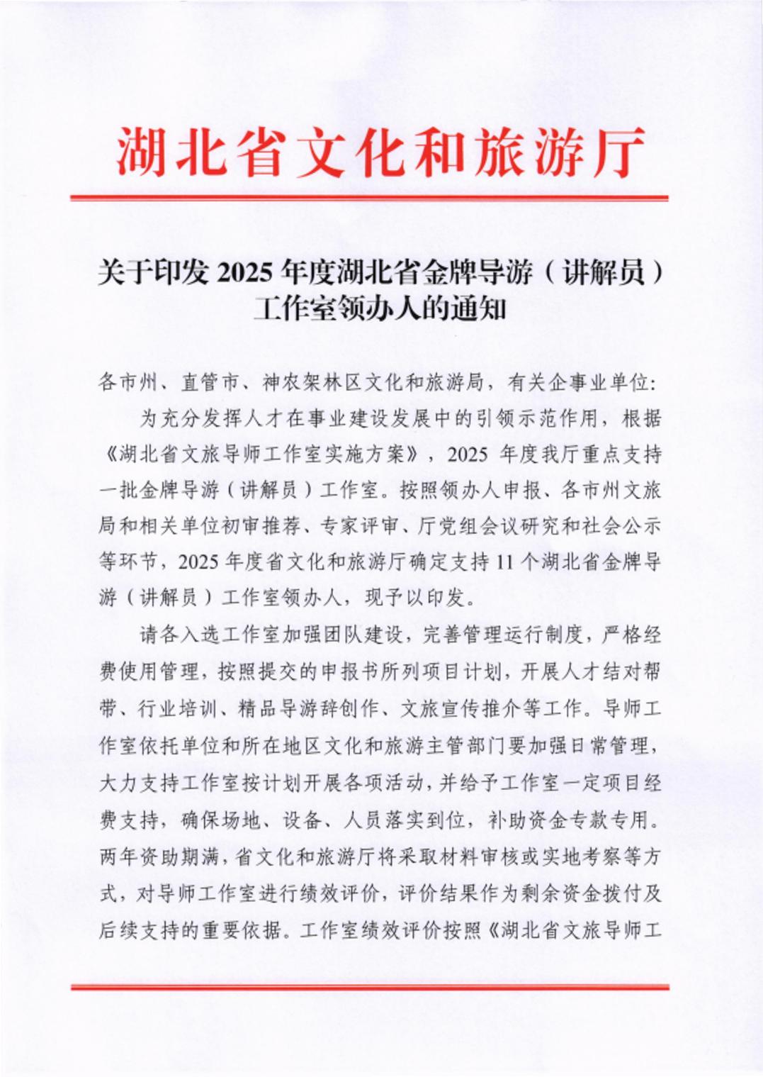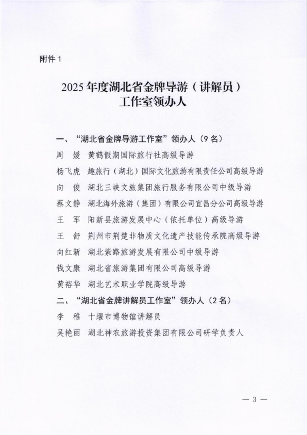 湖北省文化和旅游厅关于印发2025年度湖北省金牌导游(讲解员)工作室领办人的通知