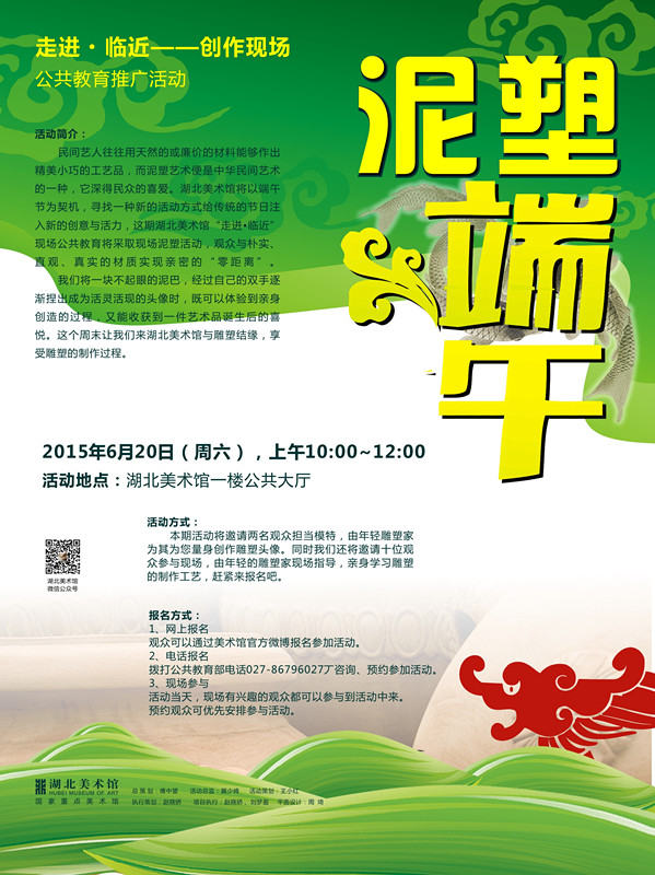 民间艺人往往用天然的或廉价的材料能够作出精美小巧的工艺品,而泥塑艺术便是中华民间艺术的一种,它深得民众的喜爱。湖北美术馆将以端午节为契机,寻找一种新的活动方式给传统的节日注入新的创意与活力,这期湖北美术馆“走进·临近”现场公共教育将采取现场泥塑活动,观众与朴实、直观、真实的材质实现亲密的“零距离”。