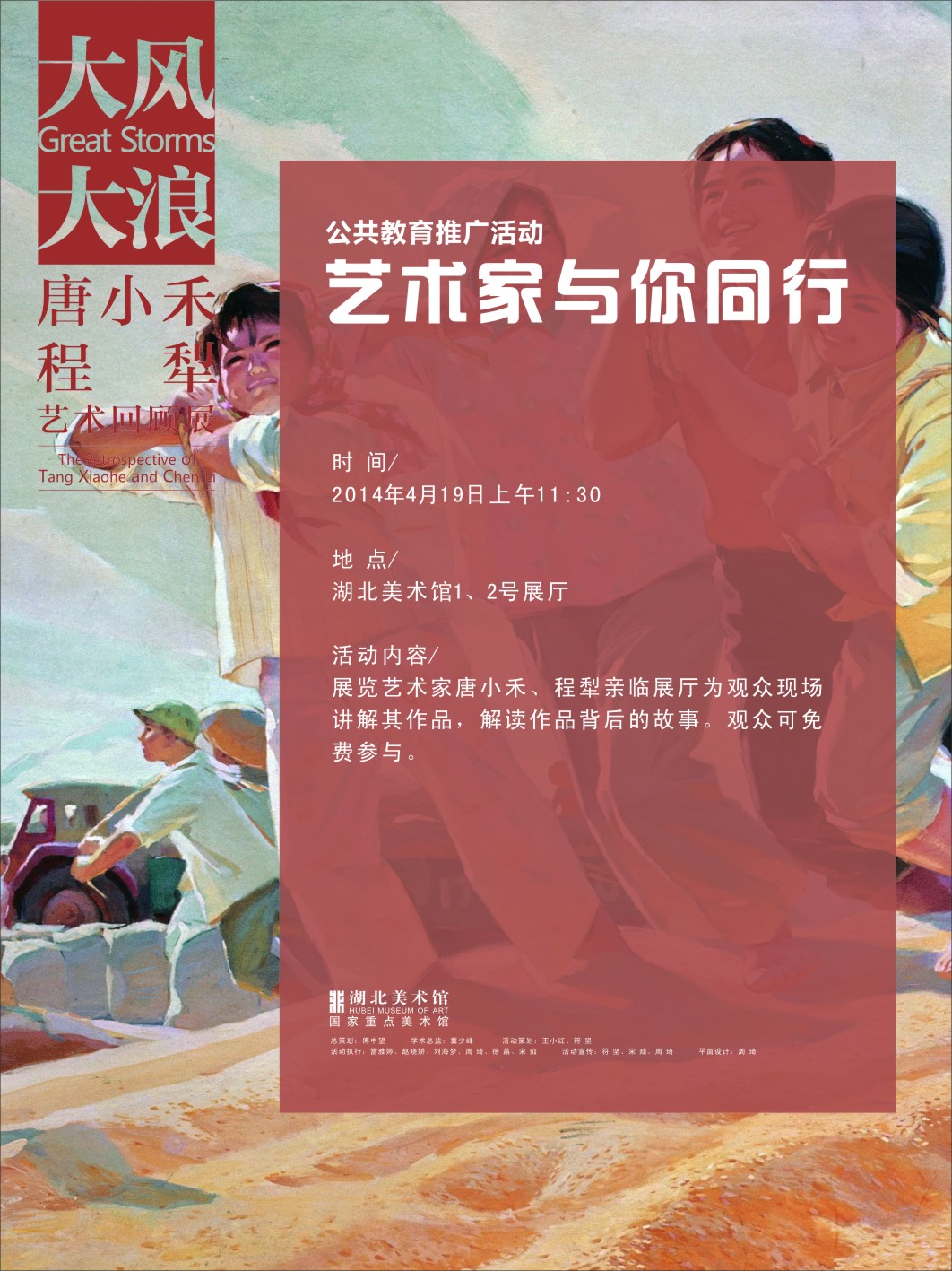 主题:艺术家与你同行 时间:2014年4月19日(周六)上午11:30 地点:湖北美术馆1、2号展厅 内容:展览艺术家唐小禾、程犁亲临展厅为观众现场讲解其作品,解读作品背后的故事,观众可免费参加。