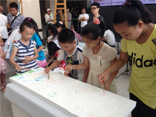 小朋友们站在画板前仔细地观察艺术家的创作,一个个都迫不及待的想施展自己的天马行空。