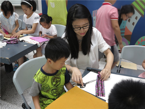 余萍老师和太阳姐姐不断给孩子们现场指导。