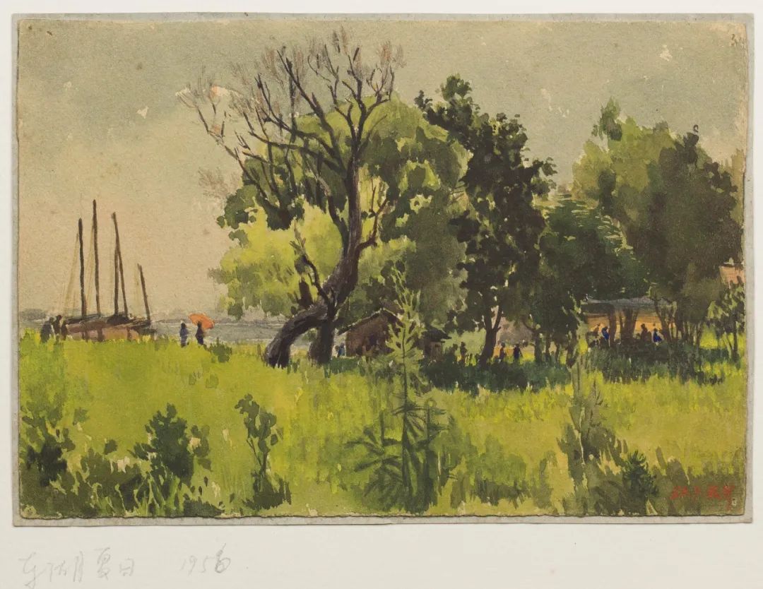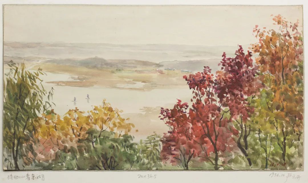 《武汉东湖风景》是湖北美术馆馆藏作品,它是动画电影艺术家严云开于1956年创作的水彩画作品,画面清新脱俗,绮丽生动。严云开是中国电影家协会会员,湖北武汉人。20世纪50年代末从中南美专附中毕业后到上海美术电影制片厂,从事动画片的场景设计与绘制。他在武汉创作了一系列以东湖为题材的水彩写生作品,让我们得以看到50年代的东湖。