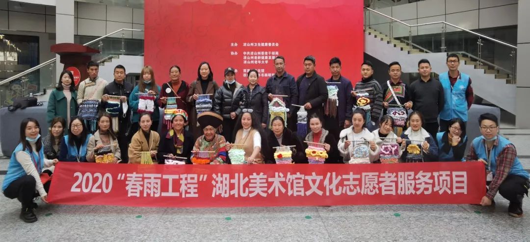 为深入贯彻习近平新时代中国特色社会主义思想和党的十九届五中全会精神,根据湖北省文化和旅游厅《2020年文化和旅游志愿服务工作方案》的要求,湖北美术馆文化志愿者团队于2020年12月赴凉山彝族自治州,与当地的非遗传承人、文化馆工作者、企业代表等进行文化交流活动,送去了具有浓厚湖北地域特色的艺术体验工坊和精美的艺术书籍,更带去了湖北人民的问候,加深了两地的文化交流与合作。