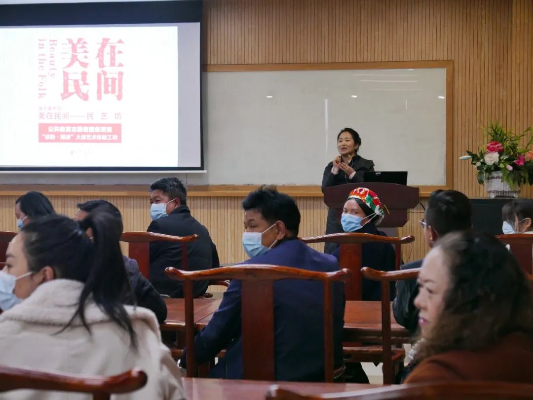 凉山州文旅局公共服务科科长石鹏、凉山州图书馆副馆长张颖惠、喜德县美术馆馆长唐英等出席启动仪式。随后,湖北美术馆为来自凉山州17个县的学员们相继开展了两场具有特色的艺术体验工坊。
