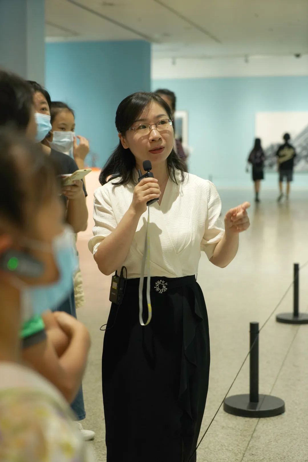 除了策展人,“小小志愿导览员”陈以夕和王昱苏也用生动的语言和流畅的解说为美术馆的观众们提供了精彩纷呈的导览,通过游戏与互动让现场的小朋友们听得兴致勃勃,同时也对“万里长江第一桥”的建造过程有了进一步的了解。