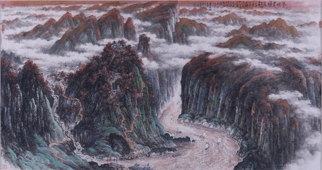 ▲萧采洲 《夔峡晨曦图》 纸本设色