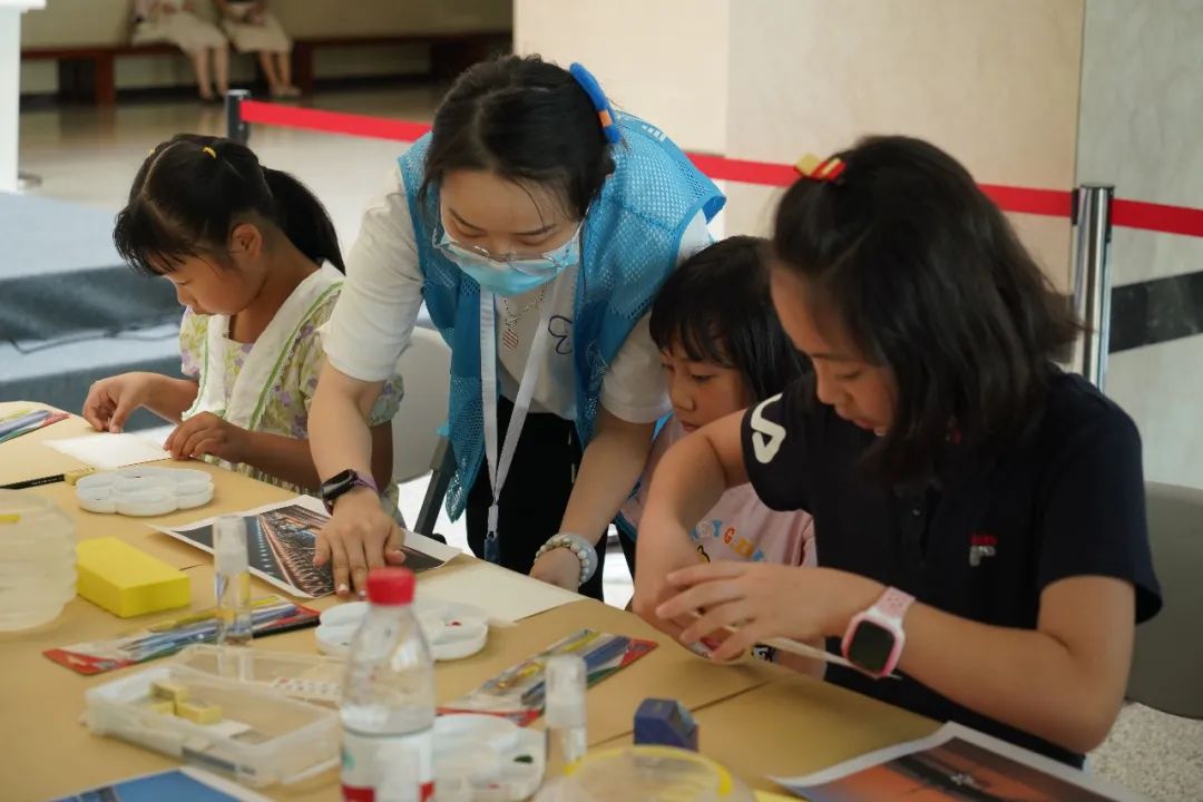 ▲湖北美术馆志愿者为小朋友进行活动讲解
