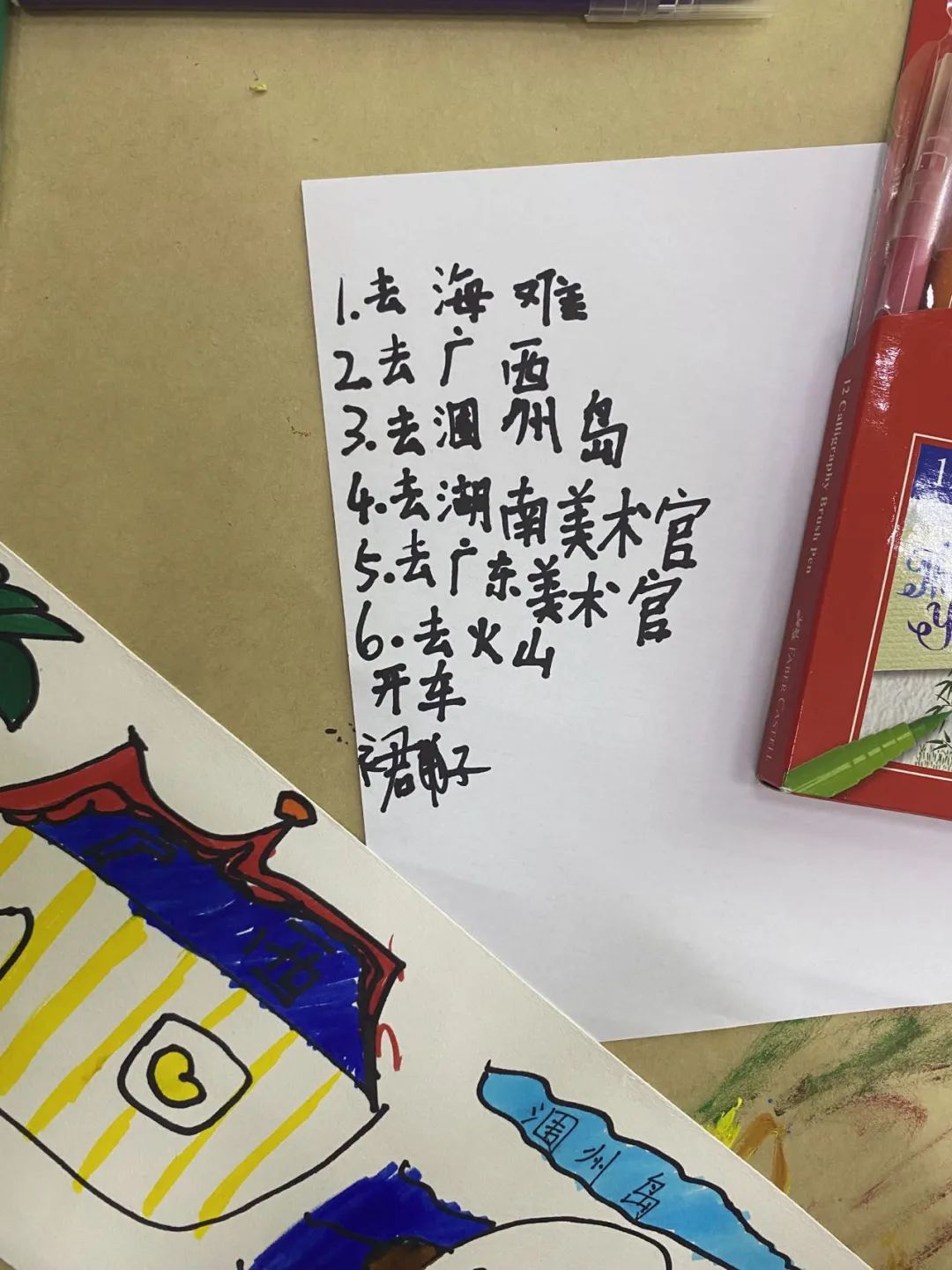 去大海游泳、到北京看故宫、前往外太空、吃一大堆冰棍、喂小鸟、给老师画像、看火山爆发……这恐怕是大多数8~10岁孩子们梦想的暑假“打卡”清单,在15日上午由广东美术馆公共教育部副主任叶小青和志愿者带来的“画·故事:我的暑假”活动中,小朋友和家长一起在画纸上畅想和描绘了各自的暑期生活。
