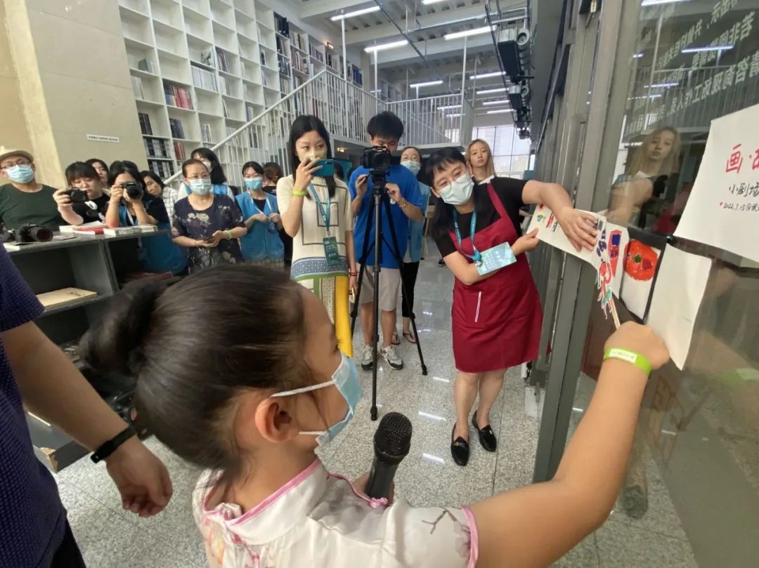 ▲“画·故事”小剧场,小朋友向大家讲述自己绘制的故事