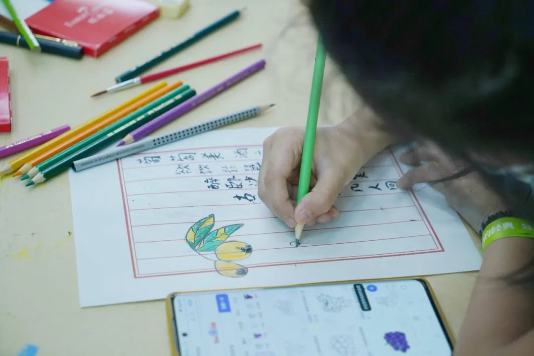 在质感古朴的信纸上,小朋友和家长们也创作起自己的诗笺。古诗、寄语、绘画,大小创作者们沉浸在诗词的世界:妈妈写“慈母手中线”,孩子写“能不忆江南”,明月、绿荫、埃菲尔铁塔……家长和孩子借由诗歌对生活的感怀,也呈现出一派现代生活的声色。