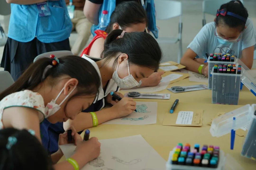 孩子和家长“背对背”的创作形式,让亲子间的共享与共感借助艺术连接起来,纸和笔、口与心,简单却精巧的过程不仅让孩子们享受了五彩缤纷的夏天,也让亲子关系凝练出艺术内涵,让艺术真正走进每个人的家庭生活。
