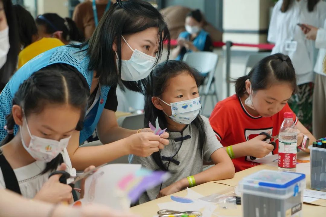 ▲广东美术馆志愿者为参与家庭讲解创作步骤