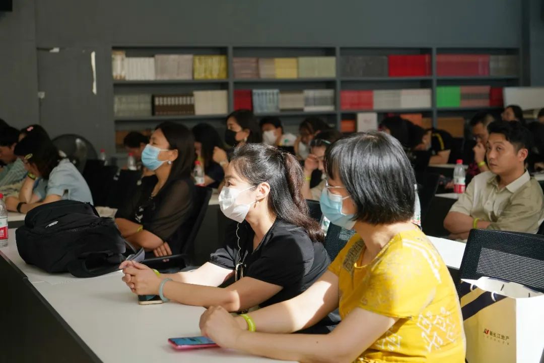 ▲美术教师参与者认真聆听讲解