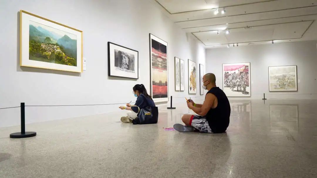 ▲参与工坊的美术教师在展厅临摹作品