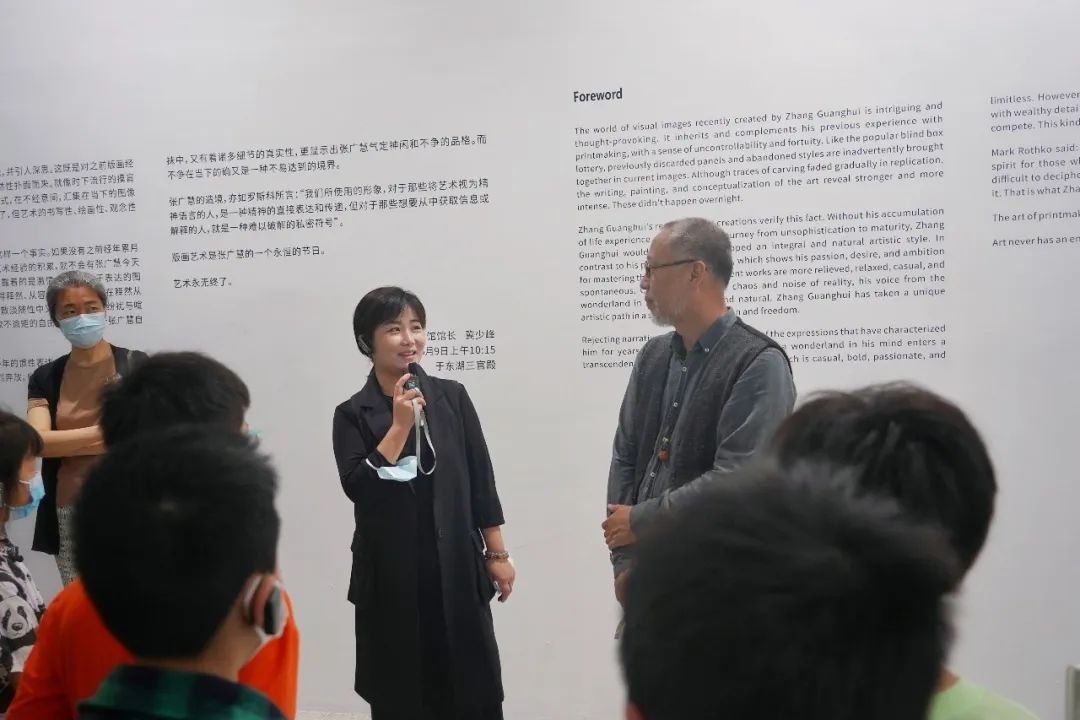 5月28日上午,在湖北美术馆的邀请下,张广慧早早来到展览现场,为观众们进行导览。组成这次“听众团”的,有成年艺术爱好者,也有即将参与亲子工坊的孩子及其父母。