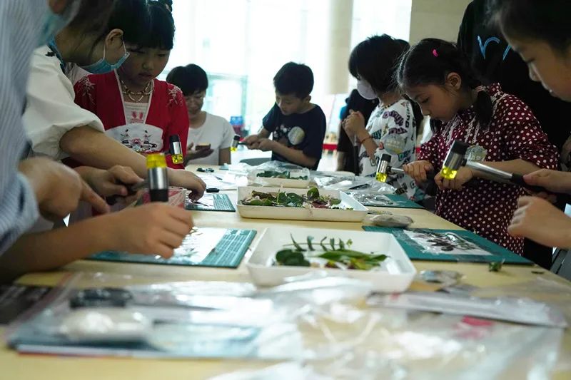 为了让观众在欣赏之余更多地了解作品中的故事与内涵,并将作品中的烂漫自由传达给天真的孩童,同时也希望借节日契机让孩子们在艺术的氛围中感受中国传统文化的魅力,湖北美术馆在端午节前夕围绕展览举办了“艺术家与您同行”及“花草造梦——植物拓&草药囊”亲子工坊两场活动。