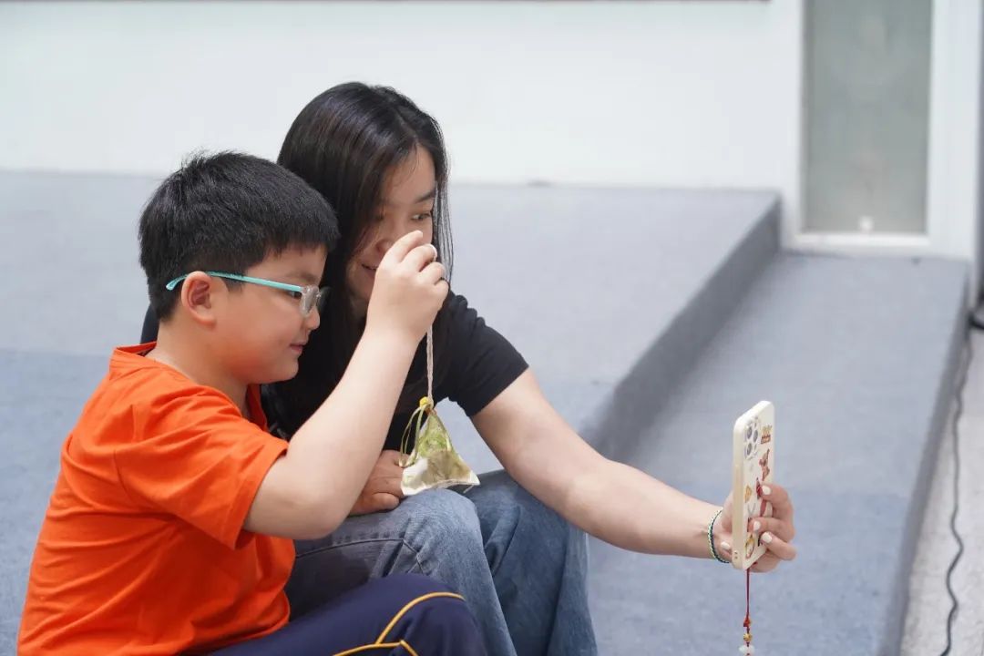 ▲小朋友开心地拿起自己的香囊拍照▼