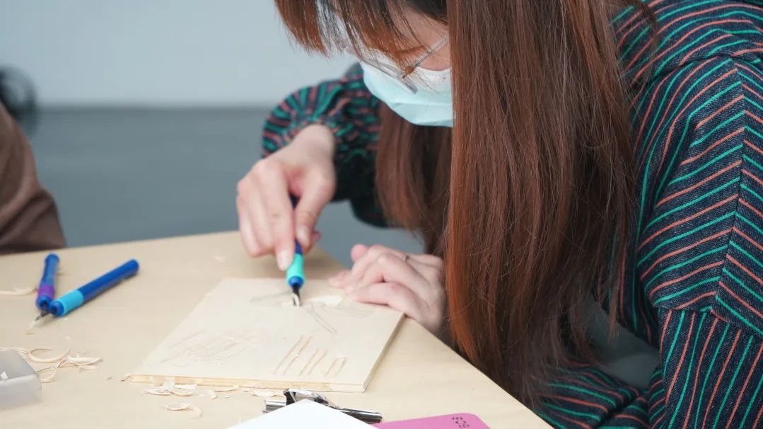 时而凝神静听,时而会心一笑,时而奋笔疾书——现场观众的真实反映是活动感染力的最佳证明。而在令人如沐春风的“工业记忆”一席谈结束后,活动后半场以手工坊的形式引领观众亲身体验木刻版画的乐趣与魅力。