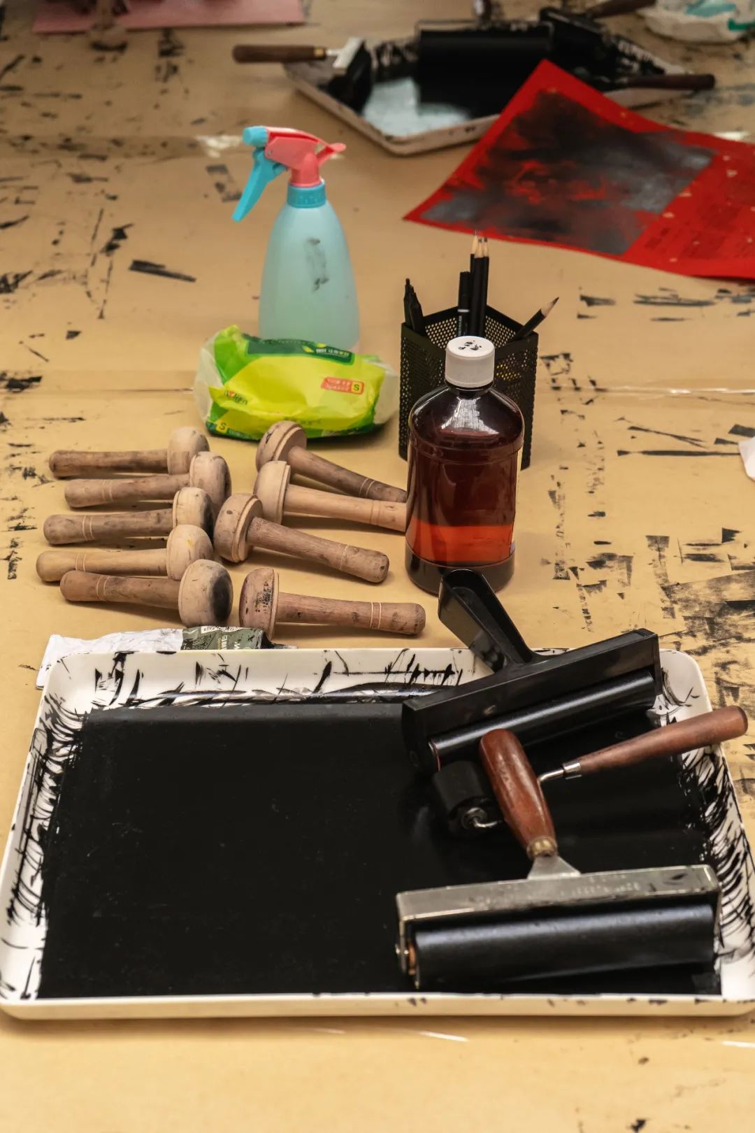 吹塑纸板因结构疏松易于上手被作为本次活动的体验材料,而专业的版画艺术作品大都会使用木版、铜版、石版等,作画手法也不局限于单纯的刻。
