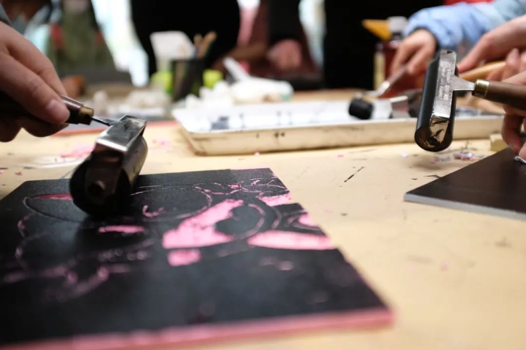 ▲“新春年历——吹塑版画体验工坊”活动现场