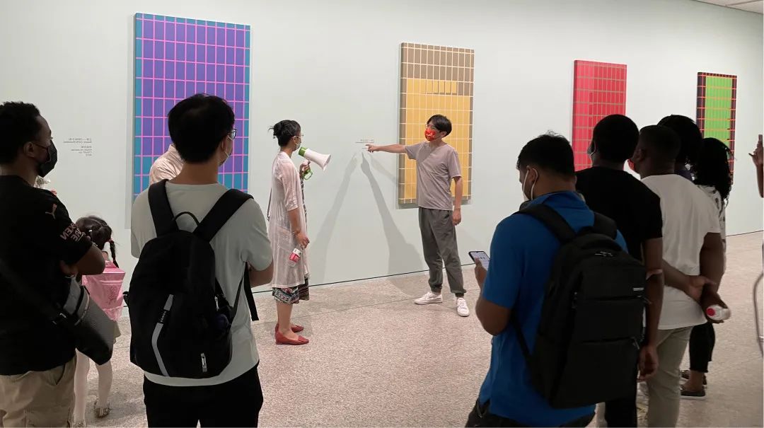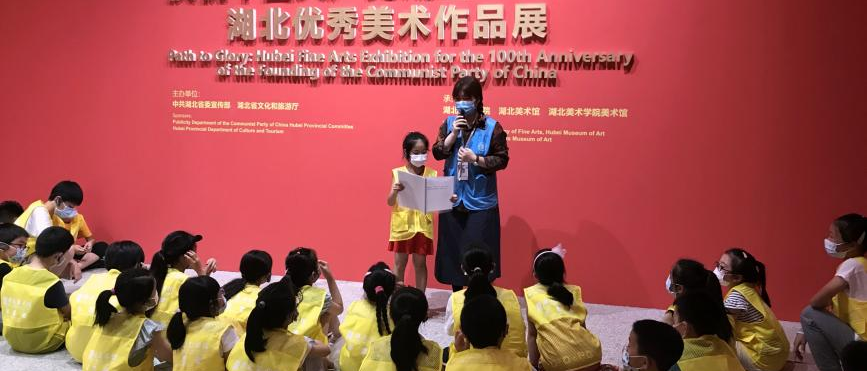 ▲观众在湖北美术馆公共阅览区选择漂流图书
