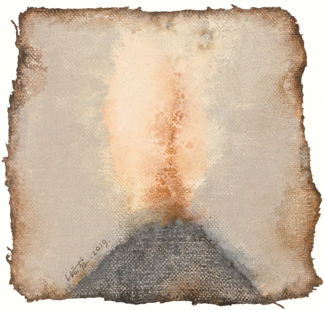 来到《动容》这件作品前,观众难免会好奇为何陈淑霞的展出作品没有传统的油画框,并且画面的边缘如同烧焦一般。陈淑霞向大家解释道这个时期她将创作的中心从画面中心转移到边缘。边缘是经常被大家所遗忘和忽略的地方,但同样也需要艺术家关注并通过视觉语言去表达。