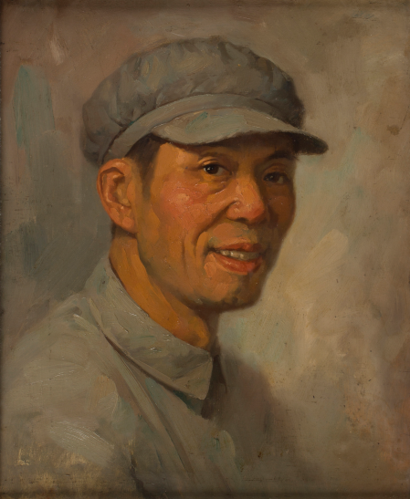 其中,以肖像画见长的杨立光,就是从这里走出的一位杰出油画家。湖北美术馆馆藏作品《中年杨立光自画像》便是杨立光先生在母校执教期间创作的肖像作品。画面中,穿着朴素的杨立光侧身凝视前方,面部略带微笑,眼神坚定而又充满希望,给人质朴、厚重而真挚的感受。整个画面以黄绿为主色调,配以凝重浑厚的大笔触涂绘,不仅显现出西方古典绘画的厚重与真实,也传承了中国传统艺术中的意蕴与情境。