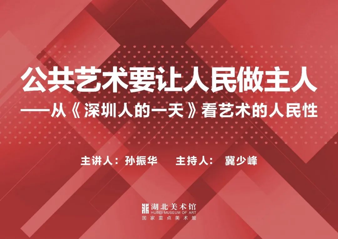 5月31日,湖北美术馆邀请中国美术学院博士生导师孙振华教授做客“听涛讲坛”,开展“公共艺术要让人民做主人”的学术讲座,讲座由湖北美术馆馆长冀少峰主持。